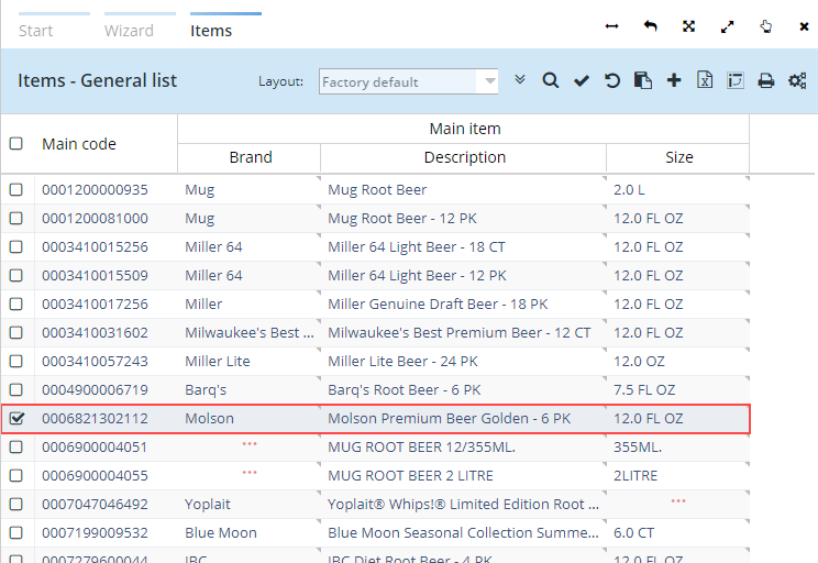 - Click on Item auxiliaries to open the Item auxiliaries start window.