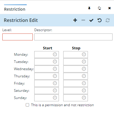 - Enter the restriction level (mandatory).
