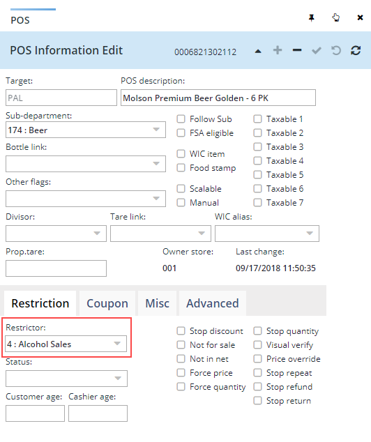 After configuring the Restriction table, you must link the item to the restriction level. Follow these steps:
