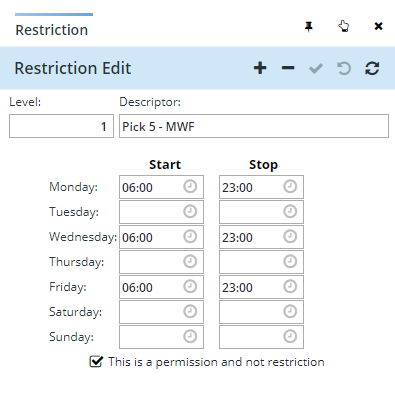 - Click Edit in the bottom menu to display the Restriction table.