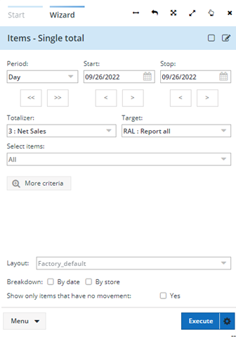 Criteria selection is possible through the Items - single total wizard.